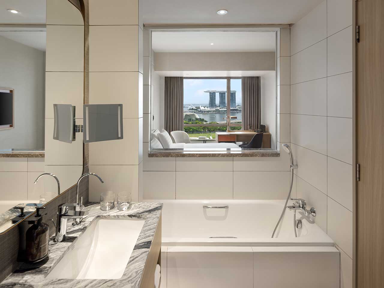 Enfin, 5 Marina Bay Suites et 3 Skyline Suites d’environ 61 m2 sont les plus exceptionnelles, offrant luxe et espace, avec la chambre séparée du salon.