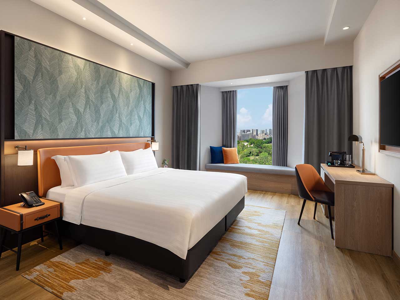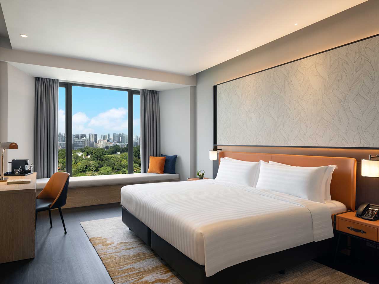 Les 242 Deluxe City View Rooms ont une superficie et des configurations identiques à celles des Superior Rooms, mais offrent quelques éléments de décoration supplémentaires, dont une longue banquette située près de la fenêtre, pour apprécier d'autant plus la vue sur la ville.