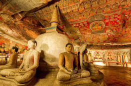Départ pour la visite du Temple rupestre de Dambulla après le petit-déjeuner. Ce temple est constitué de cinq grottes, décorées de sculptures et de peintures représentant des scènes historiques et des épisodes de la vie de Bouddha. Il s'agit du plus grand sanctuaire rupestre du Sri Lanka.