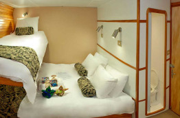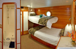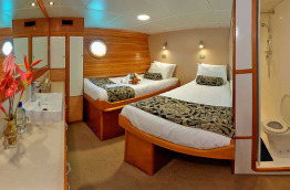 NAI’A est un navire luxueux et spacieux. Il fait 36,50 m de long et 9,20 m de large. Les passagers bénéficient ainsi de beaucoup d’espace. Construit en 1979, puis réaménagé pour la plongée en 1993, NAI’A a été rénové à plusieurs reprises, notamment en 2010 où toutes les cabines ont été refaites à neuf. Il offre seulement 9 cabines luxueuses, elles sont toutes décorées et aménagées avec beaucoup de goût, dans un style à la fois contemporain et rustique. Elles sont spacieuses, offrent de généreux rangements, et sont équipées de l’air conditionné et d’une salle de bains privée. 5 cabines ont un grand lit double (3 ont un lit qui peut être transformé en lits jumeaux). 2 cabines ont un lit double, plus un lit simple superposé, alors que 2 autres ont des couchettes superposées.