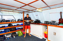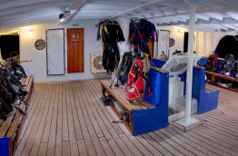 Le pont de plongée est spacieux, avec un bassin de nettoyage pour le matériel de plongée, et un autre pour le matériel photo, des dispositifs d’accrochage, des stations de chargement, des tables pour les caméras et appareils photo, et des douches chaudes. Des serviettes de bain sont fournies après chaque plongée.