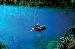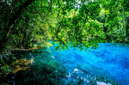 Votre premier arrêt sera au trou bleu de Matevulu. Vous remonterez la rivière en pirogue dans une nature sauvage pour arriver ensuite dans un trou d’eau naturel d’un bleu extraordinaire ! On dit qu’il est profond de près de 20 m, et son diamètre est de 20 m également. Les trous bleus sont vraiment une des particularités de Santo. Ce sont des résurgences de sources d’eau douce qui traversent le sous-sol calcaire et la roche de corail. La pureté de l’eau et la lumière leur donnent ces spectaculaires couleurs aux nuances de bleus incroyables. Ils sont très photogéniques grâce aux contrastes des couleurs…