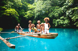 L’excursion commence par la visite du centre culturel de Iarofa Village, à seulement 10 km de Port Vila. Ce sera l’occasion d’en apprendre davantage sur la culture locale du Vanuatu. Vous poursuivrez votre route vers l’Est et ferez une visite au fameux trou bleu surnommé « Blue Lagoon ». La couleur de l’eau est à peine croyable, vous pourrez vous y baigner. Un peu plus loin, après avoir traversé d’immenses cocoteraies, vous visiterez le village d’Eton. C’est un joli petit village, et les jours de semaine, vous pourrez aller visiter l’école primaire. En continuant la route, vous ferez une escale au village de Pang Pang pour admirer son immense banian, l’occasion d’en apprendre un peu plus sur cet arbre immense, et son utilisation par les anciens.