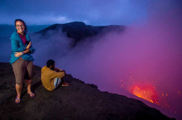 Après le déjeuner, départ pour une excursion au volcan Yasur. Vous traverserez les plaines de White Grass avec ses chevaux sauvages, des paysages de cultures avec notamment des plantations de café, passerez à proximité de villages avant d’arriver dans un paysage surprenant. Peu à peu vous constaterez que le sable noir est partout, il s’agit de cendres volcaniques projetées par le volcan. Puis vous traverserez des paysages désolés, bienvenue « sur la lune ». Une route a été construite et conduit les visiteurs à un parking en bas, à seulement 150 m du bord du cratère. Cela fait du Yasur, le volcan actif le plus accessible au monde. C’est globalement une excursion que tout le monde peut faire. Il suffit d’avoir des chaussures confortables et une condition physique raisonnable pour marcher dans le sable sur une pente douce, en direction du cratère. Du haut de ses 361 m, vous pourrez observer les fumerolles, et la lave bouillante. On voit et on entend clairement les éruptions de magma. C’est comme assister à un feu d’artifice, en direct du centre de la terre. L’activité du volcan est variable, mais elle est suivie de près par les vulcanologues. Il est possible, qu’en cas de danger, vous ne puissiez y accéder.