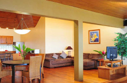 2 Attached One Bedroom Oceanfront Bungalow, sont similaires aux précédents au niveau des équipements, mais ce sont des bungalows mitoyens, en bord de plage.