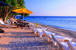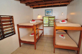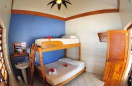 2 chambres Twin Share Room directement les pieds dans le sable, avec un lit double ou des lits jumeaux, ventilateur, lavabo, réfrigérateur, et une belle terrasse avec vue sur la mer pour profiter des extérieurs. Les sanitaires sont extérieurs dans un bloc commun.