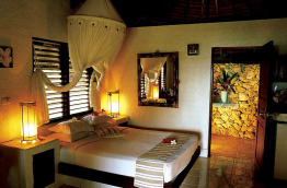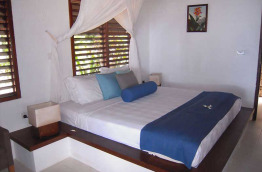 Les bungalows sont simples, sans prétention, et construits dans un style tropical avec un charme fou. Avec des toits, hauts de plafond, recouverts de feuilles de palmier, ils sont bien intégrés dans l’environnement naturel de l’hôtel. Les murs sont en béton et le sol en céramique. Il n’y a pas d’air conditionné, mais des persiennes sur les murs permettent de créer une ventilation naturelle.