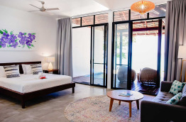 1 Beachfront Superior Suite est la plus récente et la plus spacieuse avec ses 76 m2. Située en bord de plage, elle bénéficie d’une terrasse avec vue sur la mer, d’un salon indépendant de la chambre, d’une baignoire et de l’air conditionné. Elle est très appréciée des couples en lune de miel ou de ceux qui souhaitent simplement se faire plaisir.