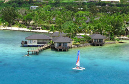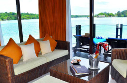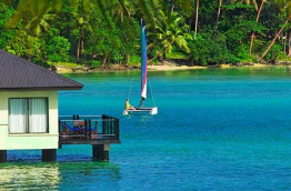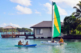 4 Overwater Villas sont construites sur pilotis surplombant le lagon. Elles ont une salle de bains spacieuse avec baignoire à jets, et une douche séparée, un grand salon donnant sur un balcon extérieur, 2 télévisions avec lecteur DVD et CD. Elles peuvent accueillir 2 adultes maximum.